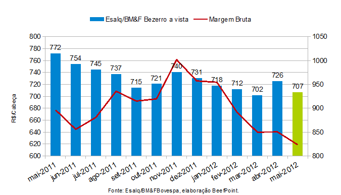 Gráfico 1. Indicador Esalq/BM&FBovespa bezerro à vista x margem bruta