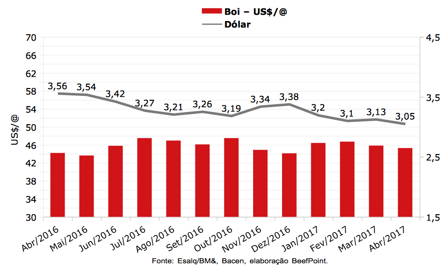 | Fonte: Esalq/BM&F, Bacen, elaboração BeefPoint | ||||