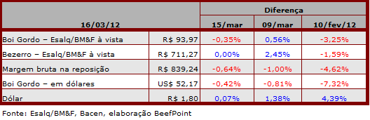O contrato futuro do boi gordo para Abr/12 foi negociado a R$94,11 com baixa de R$ 0,03.
