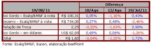 Tabela 2. Fechamento do mercado futuro em 19/08/11