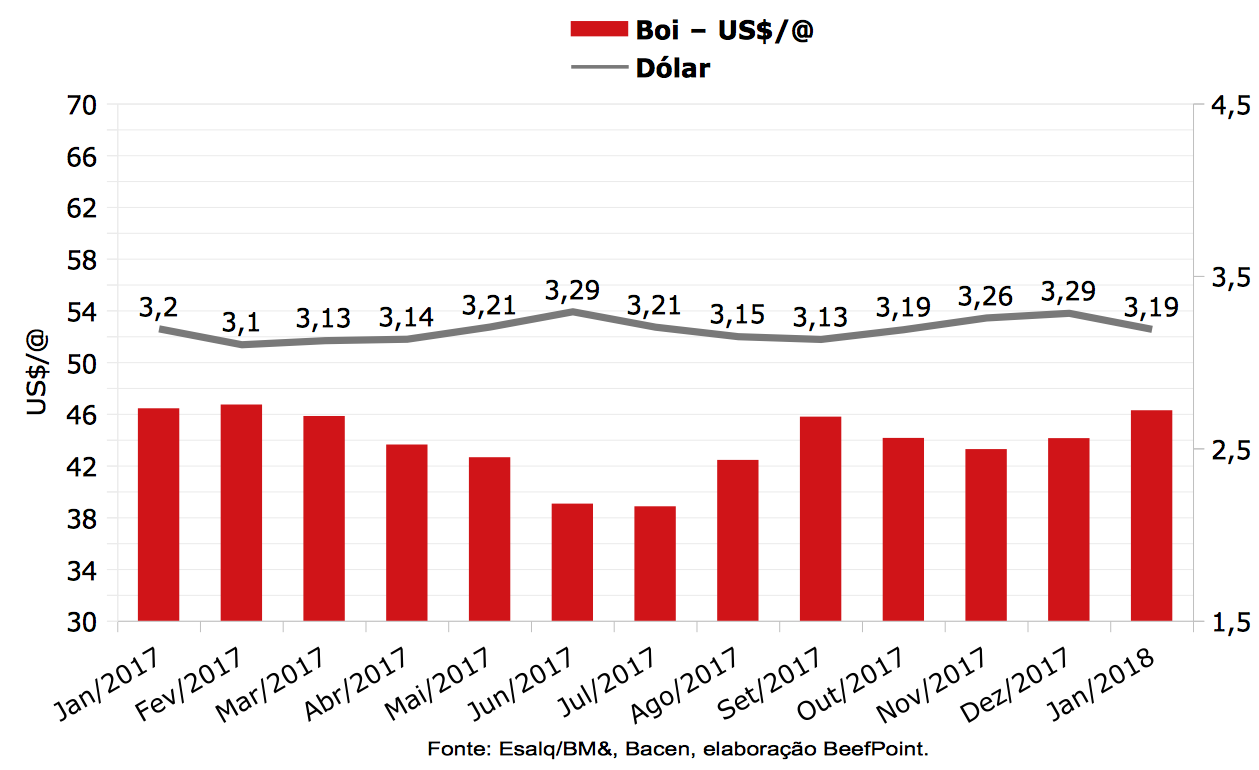 | Fonte: Esalq/BM&F, Bacen, elaboração BeefPoint | ||||