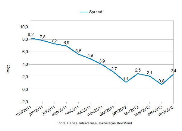 Gráfico 4. Spread Indicador Esalq/BM&FBovespa boi gordo à vista x equivalente físico