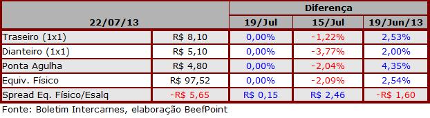 O contrato futuro do boi gordo para Ago/13 teve valorização de R$0,01 e foi negociado a R$101,88.