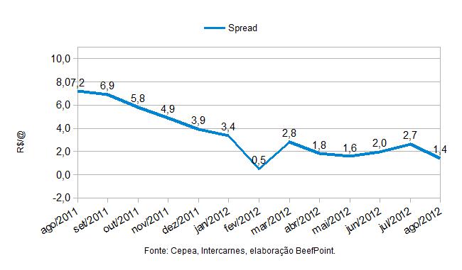 Gráfico 4. Spread Indicador Esalq/BM&FBovespa boi gordo à vista x equivalente físico