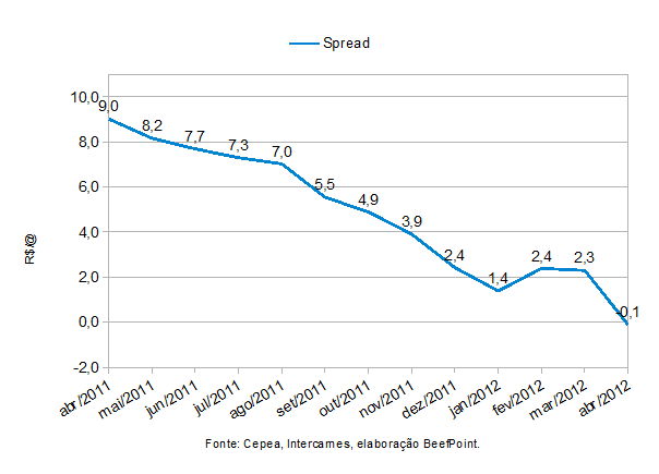 Gráfico 4. Spread Indicador Esalq/BM&FBovespa boi gordo à vista x equivalente físico