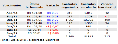 Tabela 2. Fechamento do mercado futuro em 25/08/11