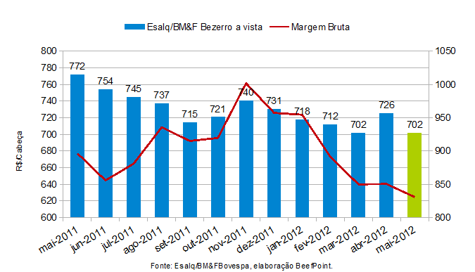 Gráfico 1. Indicador Esalq/BM&FBovespa bezerro à vista x margem bruta