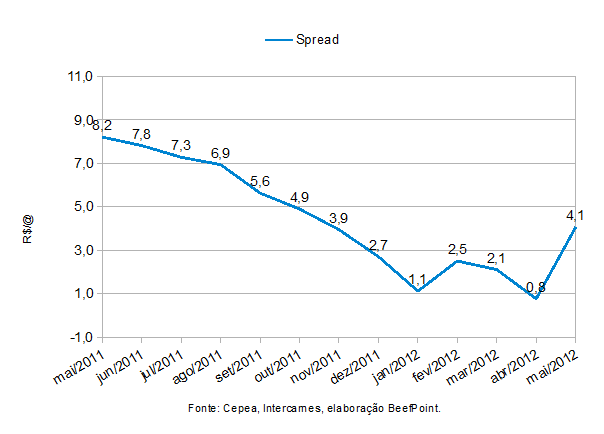 Gráfico 4. Spread Indicador Esalq/BM&FBovespa boi gordo à vista x equivalente físico