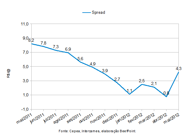 Gráfico 4. Spread Indicador Esalq/BM&FBovespa boi gordo à vista x equivalente físico