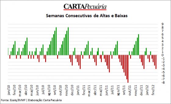 Essa é a quarta semana seguida de queda na arroba agora em fevereiro.