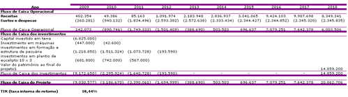 Vamos demonstrar através de um estudo de viabilidade econômico/financeira com horizonte de 10 anos um sistema de pecuária com implantação de eucalipto para produção de carvão com corte aos sete anos no sistema 10 x 3 (10 metros entre linhas e 3 metros entre plantas sendo 333 árvores por ha) e um sistema de pecuária tradicional.