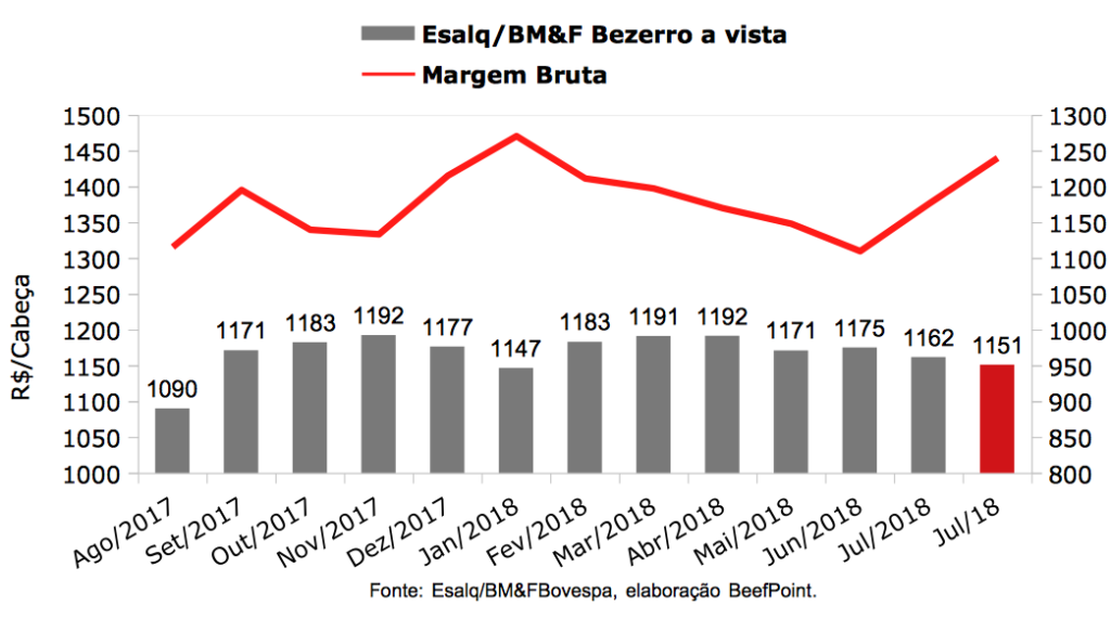 Indicador do boi gordo à vista apresentou alta de 1,87%, cotado a R$ 144,60/@. Bezerro apresentou alta de 0,33%, cotado a R$ 1157,18/cabeça. O dólar apresentou baixa de 2,71%, cotado a R$ 3,78.