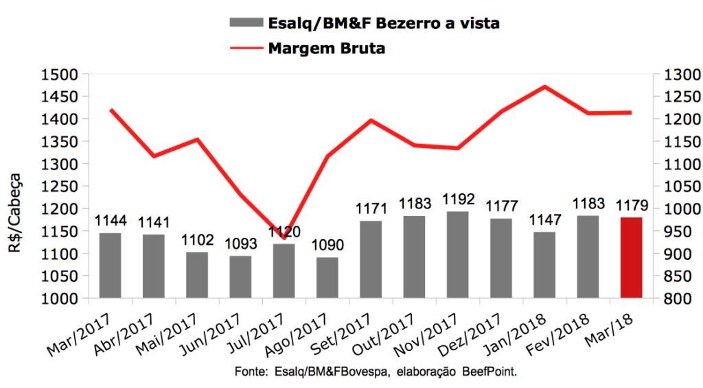 Indicador do boi gordo à vista apresentou baixa de 0,69%, cotado a R$ 143,00/@. Bezerro apresentou baixa de 0,79%, cotado a R$ 1197,12/cabeça. O dólar apresentou alta de 0,37%, cotado a R$ 3,34.