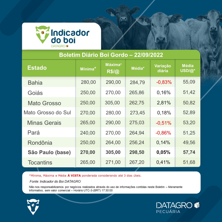 Balizador de preços do boi gordo GPB/DATAGRO – Boletim de 22-setembro-2022