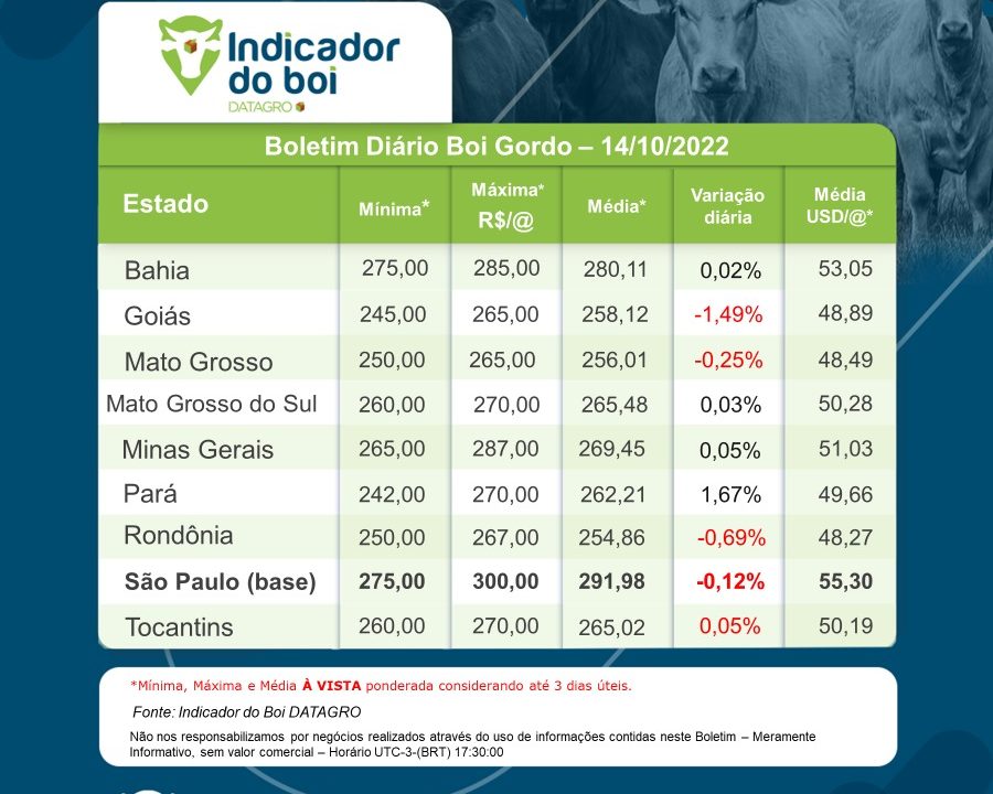 Balizador de preços do boi gordo GPB/DATAGRO – Boletim de 14-Outubro-2022
