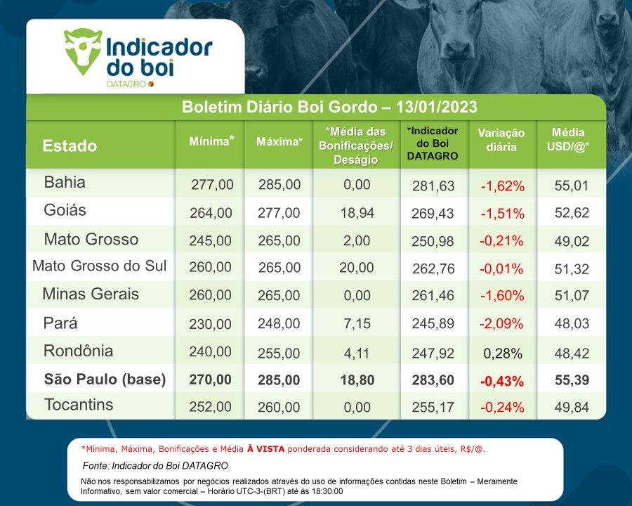 Balizador de preços do boi gordo GPB/DATAGRO – Boletim de 13-janeiro-2023