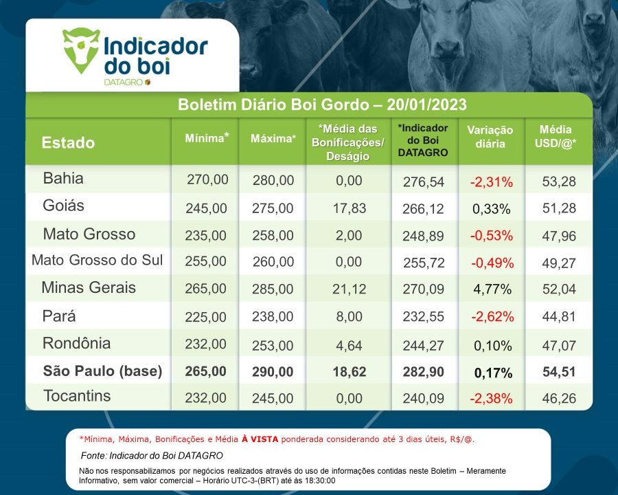 Balizador de preços do boi gordo GPB/DATAGRO – Boletim de 20-janeiro-2023