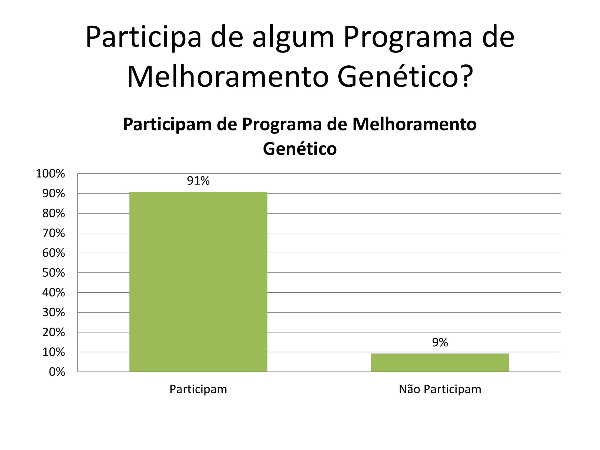“É fato que 89% dos participantes fazem parte de pelo menos um programa de melhoramento genético, resultando no crescimento de grandes projetos de seleção e comercialização de reprodutores. Nos dias de hoje, participar de um programa de melhoramento genético é essencial para se agregar valor ao produto, mas só isso não garante resultados, pois boa nutrição – apresentação – e criar um relacionamento com cliente são fundamentais para fidelização”, avalia o zootecnista William Koury Filho, um dos organizadores do Top 100.