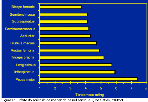 O músculo mais macio, Psoas major, é assim considerado, devido à combinação de um maior comprimento de sarcômero e reduzida quantidade de colágeno presente, além de pouca atividade de proteólise. Por outro lado, o m. Infraspinatus é considerado macio, devido ao comprimento do sarcômero, que é relativamente maior, juntamente com elevado conteúdo de colágeno presente, além de possuir baixa atividade proteolítica. Além disso, os músculos Biceps femoris, Supraspinatus, e Semitendinosus podem ser considerados, mais macios e com elevado conteúdo de colágeno.
