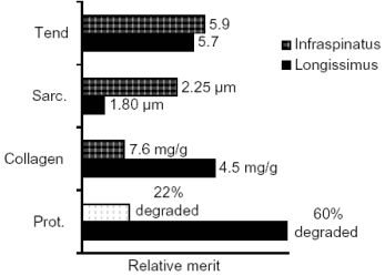 Porém, o m. Biceps femoris é considerado o de maior atividade proteolítica pós-morte, além de possuir menor comprimento de sarcômero, enquanto o Semitendinosus possui maior comprimento (> 2.0 µm) e quantidade intermediária de atividade das proteólises. O m. Supraspinatus é considerado baixo em capacidade de proteólise e comprimento intermediário de sarcômero (Figura 02). Portanto, diferentes músculos poderiam obter níveis similares de maciez, que resultariam de amplas e diferentes combinações de maiores comprimentos de sarcômero, proteólise pós-morte e conteúdo de colágeno. Entretanto, a utilização de algumas estratégias para a melhora da maciez da carne (ver artigo Efeito de Algumas Técnicas Pós-Morte a fim de Melhorar a Qualidade da Carne 16/06/2003) poderia minimizar essas diferenças entre músculos.