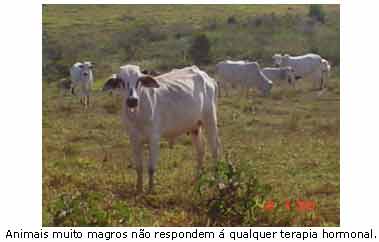 As vacas em anestro (não manifestam cio), ou seja, que não manifestam cio, são facilmente encontradas em qualquer rebanho. Geralmente ocorre em animais em lactação. A principal causa está relacionada a problemas nutricionais. Como é de conhecimento geral, vaca magra não manifesta cio. Quando é esta a causa do problema, nenhuma terapia hormonal pode ajudar. Por se tratar de uma falha de manejo, a resolução do problema deve ser feita diretamente na causa, ou seja, correção da nutrição dos animais. A utilização de medicamentos para corrigir esta situação, onde o problema é nutricional, apresenta péssimos resultados, além de um custo bem mais elevado que a correção da causa, no caso a nutrição.