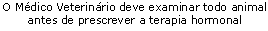 É imprescindível um exame ginecológico prévio do animal, antes de se optar pelo tratamento. Animais com problemas nutricionais graves não respondem, á terapia hormonal, como já dito. Além do mais, caso exista uma gestação não conhecida, que por sinal é uma causa de anestro, estes produtos certamente vão causar aborto.