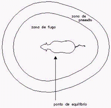 “Zona de fuga” é o espaço individual de cada animal que delimita a distância (“distância de fuga”) que ele se mantêm de uma pessoa – ou predador. Quando pressionamos no limite da zona de fuga do animal, este se afasta. Penetração acentuada na zona de fuga pode causar pânico.